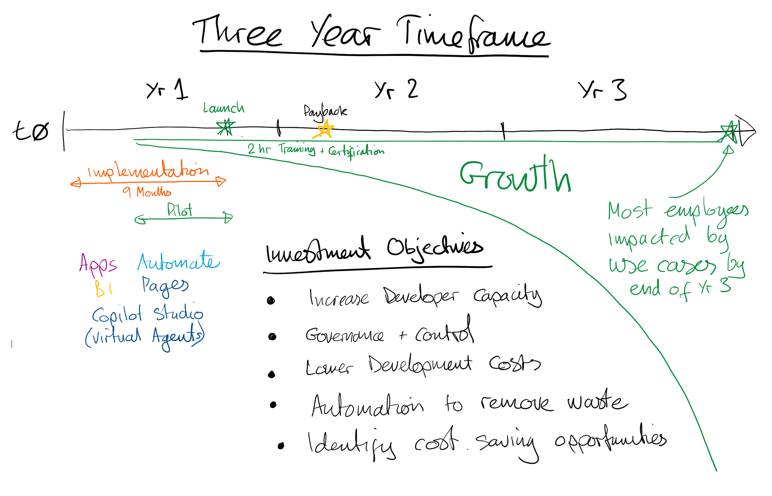 In 2024 Microsoft commissioned a 2024 Forrester Total Economic Impact™ study to support investment decisions and quantified Power Platform’s impact. The study highlights a 224% ROI, USD82 million in net-present value (NPV), and a payback period of under six months. These benefits stem from reduced development timelines and IT costs, time savings for users, and faster revenue growth from quicker solution deployment. You can find a link to the Microsoft post here: Reduce development times and increase ROI with Microsoft Power Platform - Microsoft Power Platform Blog